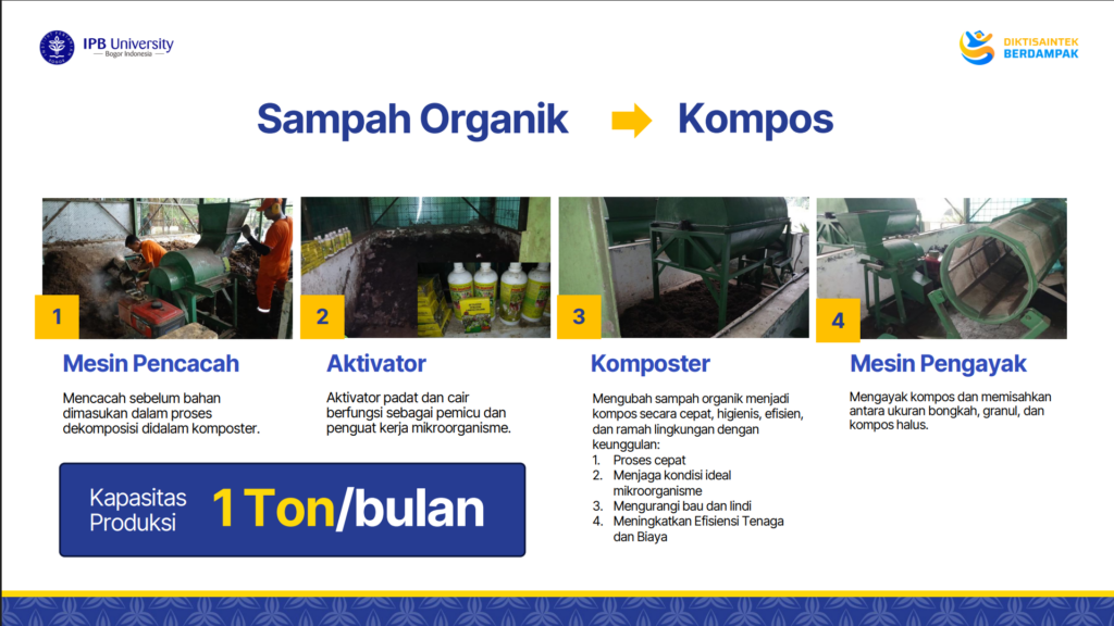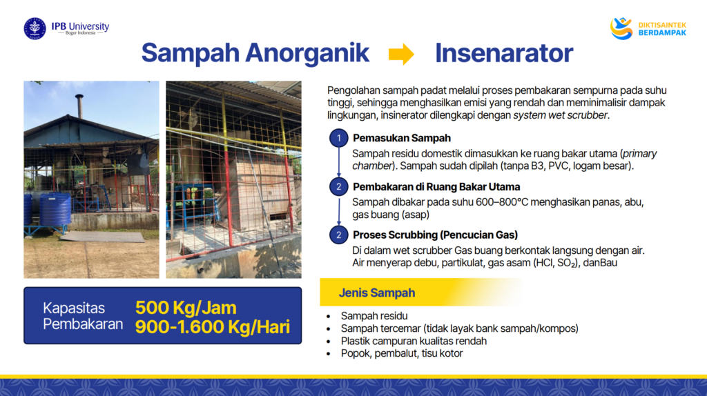 Per bulan Juli 2025 IPB University sudah tidak membuang sampah ke TPA Galuga Leuwiliang Bogor, jadi sampah sudah diolah sendiri di dalam kampus.